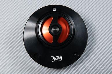 Tappo serbatoio ad apertura rapida, senza chiave. Sistema di apertura ad appoggio e 1/4 di giro, rapido, ideale per un utilizzo su pista in gara, dove i secondi sono preziosi! (Sicuramente, anche perfettamente adatto all'uso stradale, ma il suo sistema di apertura senza chiave potrebbe non essere la soluzione per la città°.