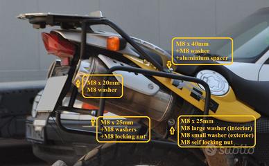 Questo set è nuovo, mai montato, ed è stato progettato per garantire il corretto posizionamento delle tue borse laterali, offrendo massima stabilità e sicurezza durante i viaggi.