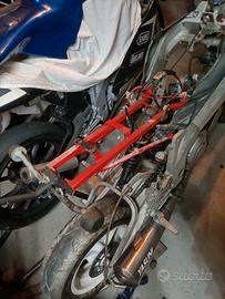 vendo telaio unico in alluminio ex gpr / RS 50, creato da anziano appassionato. da vedere. monta cerchi 12 pollici non presenti. può montare motore KTM 125 GS 1989-1994. Minarelli am6 , derbi 50 Yamaha 125 4t tipo ybr. no perditempo, vendo per rottura motore. interasse 1230 mm telaio molto abitabile. chiedere per prezzi e info. DISPONIBILITà: telaio + telaietto posteriore + forcellone capriata+tamponi para caduta forcella radiale per cerchio 12" disco 250mm completo di piastre e manubrio alto pit bike pinza radiale e pompa freno. possibilità di annunci creati ad hoc. no perditempo.