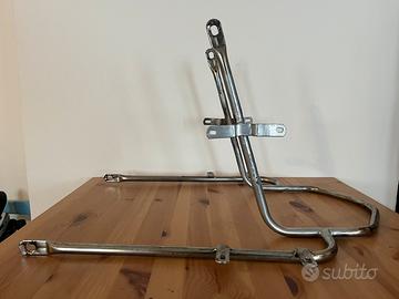 Telaio portaborse per Moto Guzzi serie V7. In buono stato, ma non perfetto; in alcuni punti, nascosti dopo aver installato le borse, è stata applicata vernice spray (visibile in foto).