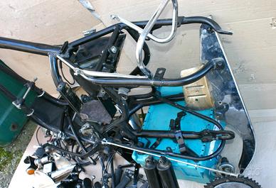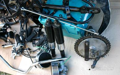 TELAIO VERNICIATO ANNI FA PER RESTAURO DI GRANDE COLLEZIONISTA, COMPLETO DELLA MAGGIOR PARTE DEGLI ACCESSSORI, PIASTRE FORCELLA E SUPP.FANALE, SERB.OLIO, SUPP. BATTERIA, CARTER CATENA, CAVALLETTI, FORCELLONE, MANIGLIA PASS. AMMORTIZZATORI, CAMPANA FRENO POST., PARAFANGO ANT. IMPIANTO ELETTRICO CON FANALE LUCAS, ACCENSIONE ELETTRONICA BOYER, CAVI, CARBURATORI ECC. ECC. COME DA FOTO, IL TELAIO ERA PROBABILMENTE NUOVO E NON HA NUMERI. SOLO IN STOCK E NON SI EFFETUA SPEDIZIONE, SOLO RITIRO DIRETTO