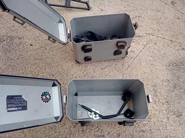 Vendo borse in alluminio MyTech da 47 LT per KTM 690 enduro R x modelli 2012/2018 comprensivo di telaio originale KTM con saldati telai(MyTech) saldati a rame. Forniscono anche borse morbide MyTech dedicate per quelle in alluminio. Il tutto è stato usato per un solo viaggio in Sud America come da foto.