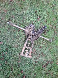 telaio con mozzo per le ruote posteriori con ammortizzatore e pinza e disco freno.