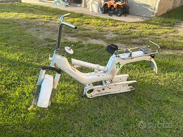 Vendo telaio si senza libretto ma con numeri ben leggibili, al motorino mancano soltanto motore e cerchi. camblaggi ecc é tutto presente, appena stato rivernciato vendo per abbandono progetto,