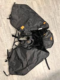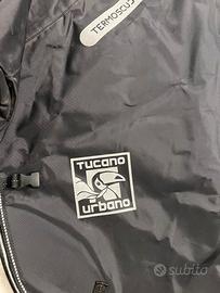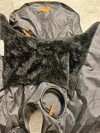 coprigambe originale dotato del SISTEMA GONFIABILE ANTISVENTOLIO BREVETTATO S.G.A.S con una nuova valvola: le camere gonfiabili sui bordi d'uscita laterali evitano lo sventolio alle alte velocità. - costruzione a tre strati HYDROSCUD® a garanzia di tenuta stagna e protezione termica: - esterno in nylon pesante a tenuta stagna con cuciture nastrate - membrana interna 100% impermeabile - interno in ecopelliccia - S.G.A.S. (sistema brevettato antisventolio) con nuova valvola dotata di tappo integrato e chiusura stagna a vite -grande tasca portaoggetti - coprisella inserito nella pettorina - stampe rifrangenti