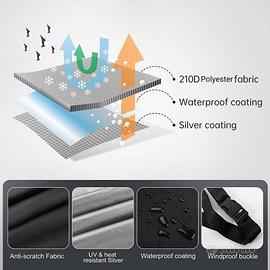 【3 strisce riflettenti】Il telo coprimoto è dotato di 3 strisce riflettenti. Una è sulla parte anteriore e le altre due sono sui lati. Con il design n