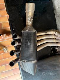 Terminale sc1-r in carbuonio 4 mesi di vita leggermente rovinato nella parte interna. Volendo se si e interessati ce anche la possibilata di prendere lo scarico completo in titanio sc pero ha i connettori un po bozzati per info in chat.