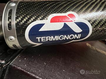 Vendo terminali in carbonio termignoni originali di provenienza Ducati 996R, facevano parte del kit racing fornito con la moto. In aggiunta anche collettore centrale, sempre originale 996R. Condizioni ottime, con all'attivo circa 6000 km. Diametro 50mm. Vanno bene anche per 998. Non vendo separatamente. Valore come ricambio nuovo circa 3600 euro da listino Ducati. Prezzo trattabile.