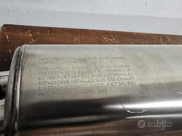 Terminale Aprilia con numero di Omologazione. Inbocco 67mm Lunghezza terminale 53 cm Presenta solo un graffio dovuta da una scivolata