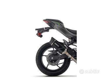 Terminale di scarico Arrow Indy Race Evo Alluminio Dark con fondello in carbonio, omologato, per Kawasaki Z500/Z500SE 2024-2026.