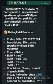 Vendo *Terminale per BMW R nineT*, *NUOVO*, *mai montato*, completo di *scatola originale* e accessori.