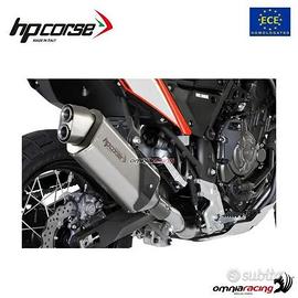 Il terminale 4-Track R di HP Corse è specificamente progettato per le motociclette Maxi Enduro, Sport Touring, Adventure e Crossover più recenti, offrendo prestazioni elevate e un design robusto per affrontare le condizioni più impegnative. Progettato dal centro R&D di Bologna, questo terminale è stato testato per oltre un anno su percorsi estremi per garantire affidabilità e prestazioni superiori rispetto agli scarichi di serie. Con un design leggero, il terminale presenta fondelli ottagonali e un beccuccio idroformato senza saldature, con il logo HP Corse inciso a laser sul corpo del silenziatore.