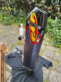 Vendo terminale FMF 4.1 in titanio blu con fondello in carbonio in perfette condizioni.