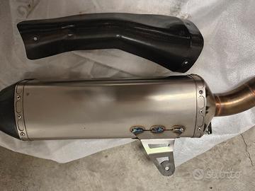 Terminale di scarico omologato Dominator in titanio con fondello e paracalore in fibra di carbonio per Africa Twin dal 2024 in poi (no valvola scarico) in ottime condizioni. Dispongo anche di collettore decatalizzato che ha però un buco visibile in foto (prezzo 80 euro).