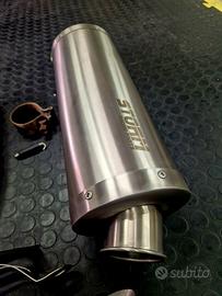 BELLISSIMO TERMINALE STORM OVAL OMOLOGATO COMPLETO DI COLLETTORE, FASCETTA, MOLLA, FASCETTA COLLETTORE, SPESSORE E BULLONE + DB-KILLER COME DA FOTO PER BMW R 1200 GS ANNO 2008.