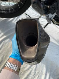 Dotato di scatola originale, documenti di omologazione, istruzioni di montaggio e para calore in carbonio.