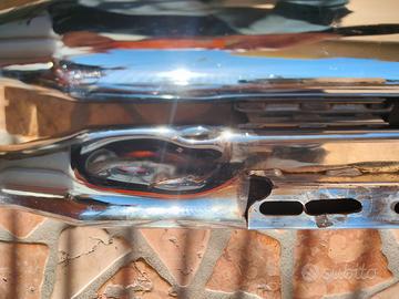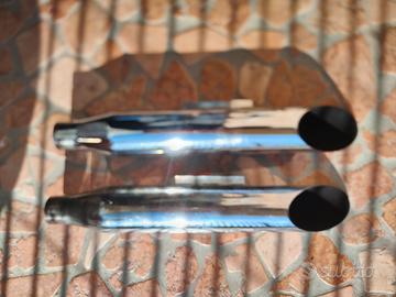 causa inutilizzo vendo terminali di scarico in buone condizioni, cromatura a posto, soltanto uno ha un' ammaccatura interna, per cui non si vede quando sono montate. Sono praticamente aperte per cui sound spettacolare. Erano montate su una softail con delle staffe per adattarle agli attacchi, ma si possono montare su qualsiasi altra, basta che l'imboccatura sia idonea.