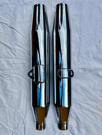 Terminali di scarico originali Harley Davidson SPORTSTER (883 e 1200 fino al 2003) Termianli originali e omologati, senza manomissioni, cromatura perfetta (solo qualche segno nel sinistro visibile nella prima foto) Codice: OEM 65193-98A e 65312-98A HDI 325 8-4 00390 e1 Disponibile anche a spedizione