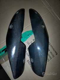 terminali di scarico originale Monster ( terminali svuotati ma con ancora il catalizzatore) scudo termico in carbonio.