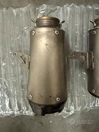 vendo terminali di scarico alto Termignoni D200 per Panigale V4 e Streetfighter V4. uno dei due terminali è graffiato (come in foto) e presenta il carbonio rotto, ma rimane ugualmente utilizzabile. usati in pista per evitare eventuali danni. NB un singolo terminale nuovo costa più del prezzo proposto, evitare offerte ridicole