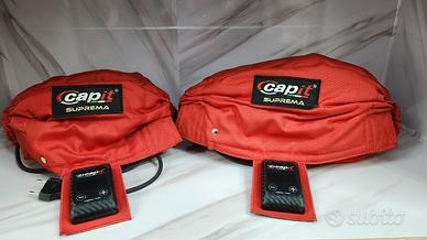 Codice ricambio: SUV22-L-1150 / SUV22-G-412 ASR MOTO propone : Le termocoperte Capit Suprema Vision per moto sono l’eccellenza del prodotto termocoperte. Suprema Vision è dotata di una centralina di controllo integrata nella stessa termocoperta di dimensioni ultracompatte (solo 8mm di spessore) realizzata in materiale resistente agli urti. Con soli 2 tasti è possibile visualizzare la temperatura di impostazione iniziale scelta (T set) e quella reale presente sui pneumatici (T run), visualizzare il tempo parziale (last time) e il tempo totale (total time) di funzionamento del prodotto e scegliere la visualizzazione in °C o °F. Disponibili in varie misure e colori sono ordinabili con spina tipo europeo (EU - 220/230 Volt) - inglese (UK - 230 Volt) - americana/giapponese (USA/JPN - 100/110 Volt) - australiana (AUS - 240 Volt). Le caratteristiche principali sono: - cavo scaldante in teflon a disposizione radiale per una riduzione del tempo di riscaldamento e una distribuzione uniforme del calore - sistema di riscaldamento regolabile da 40°C a 100°C senza termostato (in soli 30 minuti si ottiene una temperatura costante e omogenea sullo pneumatico che un normale termostato non è in grado di fornire. Il metodo innovativo e brevettato consiste nel tessere ogni pochi millimetri uno speciale cavo scaldante su di una stoffa con alto potere termoconduttivo eliminando il termostato e i relativi problemi di temperatura incostante e bassa durata) - rivestimento esterno speciale impermeabile a qualsiasi liquido - rivestimento interno antiusura e antifuoco - cavo di alimentazione in silicone resistente fino a 200°C - chiusura in velcro - il suo interno è in tessuto Heat Spreader (tessuto interno, altamente conduttivo, realizzato con specifiche leghe nobili) capace di diffondere perfettamente il calore - sistema di controllo e regolazione della temperatura Vision montato direttamente sulla termocoperta per una maggiore comodità di gestione e movimentazione Rack-Box-Pit Lan