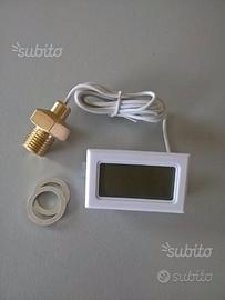 Kit completo di termometro, bulbo, batterie e velcro adesivo per fissarlo sul mezzo