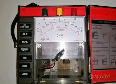 KYORITSU 4102 Tester Analogico Di Resistenza E Tensione Di Terra. Oggetto vintage usato con inevitabili segni del tempo/d'usura. Oggetto sprovvisto del vano batterie, funziona quindi solo con cavi (non inclusi). Quindi oggetto testato e funzionante. Include solo ciò che è visibile in foto senza ulteriori accessori. Preferibile il ritiro in negozio, per eventuale spedizione o informazioni in merito possibile contatto telefonico al 3496282557.