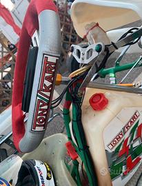 Tony kart. Motore in perfette condizioni sempre mantenuto da meccanico, con computer di bordo MyChron 4. Gomme 80%, raffreddamento ad Aqua. Cartello porta kart. Fermo da 2 anni. Serve una nuova batteria. Tutto altro funzionante. Prezzo trattabile