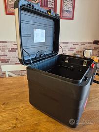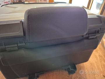 Vendesi Bauletto TOP CASE BMW VARIO con sistema di volume variabile funzionante, senza nottolino. Presenti piccoli bolli sul rivestimento in alluminio lato destro e piccole righe sul lato sinistro. Dotato di doppio schienale per il passeggero.