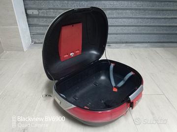 Vendo Top case in ottimo stato, poco utilizzato, unico difetto un leggero graffio sul lato sinistro in corrispondenza del catarifrangente che non ne pregiudica la funzionalità, come si vede in foto. Perfettamente funzionante, portadocumenti all'interno. Può contenere due caschi integrali e rimane spazio per guanti, scaldacollo etc...Il prezzo è comprensivo di spedizione. ATTENZIONE, la piastra di fissaggio alla moto non è compresa.