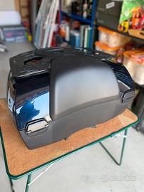 Top case cablato con stop supplementare e luce interna, poggiaschiena grande, tappetino, tutto originale BMW. Portapacchi dedicato Isotta. Colore carbon black. Puó contenere due caschi modulari