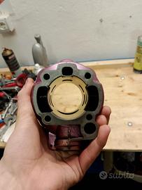 Vendo cilindro Replica Top Viola Am6 dm 49.5 mm, con travasi e luce di scarico allargati. il cilindro è appena stato cromato, mai usato. NON ho il pistone.