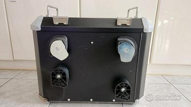 Codice ricambio: VALIGIE Accessorio marca: BMW Modello accessorio: BMW R1100GS R1150GS Applicabilit marca: BMW Applicabilit modello: R 1150 GS ASR MOTO propone : Trio Tris di valigie MY TECH per BMW R1100 GS , BMW R 1100 GS, BMW R1150 GS , BMW R 1150 GS. BAULETTO E VALIGIE MYTECH l kit top case MyTech progettato e realizzato per offrire la massima praticit e robustezza. Rappresenta una pratica alternativa per l'utilizzo di tutti i giorni, offrendo una capacit di carico considerevole e un ingombro ridotto. Il kit comprende 2 valigie laterali e il bauletto centrale. 2 X VALIGIA DRITTA DATI TECNICI:VALIGIA DRITTA: 23.5 x 46.8 x 38.0 cm. a 39 litri PESO CAD/UNA. VALIGIA: 6.5 Kg 1 X BAULETTO : PESO : 4.70 kg INGOMBRO : 38.00 x 32.0 x 30.0 cm CAPACITA': 41 lt Le principali caratteristiche sono: 1. il corpo e il fondo del top case sono realizzati in alluminio spessore 2mm; questo contribuisce a una maggiore resistenza in caso di caduta e ad attutire le vibrazioni trasmesse al passeggero; per cercare di contenere il coperchio invece di spessore 1.5mm. 2. non sono presenti particolari in plastica; anche i paraspigoli sono infatti realizzati in alluminio. 3. il corpo del top case, analogamente alle valigie, un elemento unico, saldato a Tig; in questo modo garantita la tenuta all'acqua del prodotto e l'assenza di sporgenze all'interno della top case. 4. il sistema di chiusura del coperchio ha integrato un magnete, che evita l'apertura accidentale del coperchio durante la marcia del veicolo, qualora la valigia non sia stata chiusa con le chiavi fornite in dotazione. Questa sistema di chiusura brevettato. Il coperchio pu inoltre essere aperto da entrambi i lati o rimosso completamente per facilitare le opzioni di carico 5. la verniciatura silver adottata ha elevate caratteristiche di resistenza a graffi e corrosione. 6. maniglie e attacchi per le cinghie sono interamente in acciaio INOX, per garantire massima durata e resistenza. 7.