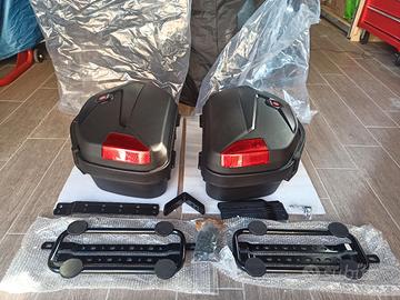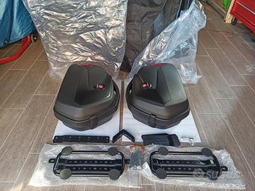Vendo tris di borse e bauletto nuovi mai usati, compreso di telaietti, staffe e piastra universale, marca Motea. Li vendo perché non si adattano alla mia moto.