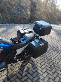 Vendo kit completo di Bauletti SHAD in alluminio nero completi di poggiaschiena per bauletto,mono chiave per tutti, piastra e telai laterali a L per una migliore estetica con portata di lt48 per il bauletto e lt 47 per entrambe le valigie laterali nuovi mai usati. Aquistati in Bmw motorrad a euro 1600, montati e smontati per cambio programmi. Nuovi e immacolati venduti a prezzo ridotto.