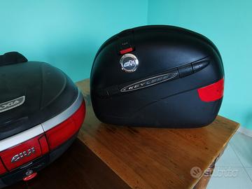 Tris Valige Givi: 2 laterali Givi E41 Keyless Monokey usate tre volte; 1 Bauletto Givi Maxia Monokey 52 litri con capienza per 2 caschi integrali, usato ma in buono stato