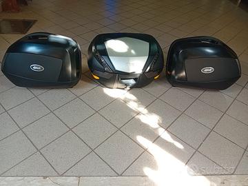 vendo il trittico completo,,per cambio tipologia di moto. Inoltre aggiungo telaietti e piastra per il bauletto, naturalmente quest'ultimi sono esclusivamente per IL STROM DL 1000,