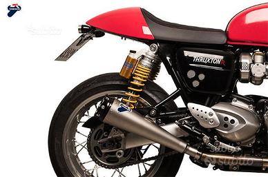 Termignoni presenta il nuoco Silenziotore Omologato con design "CONICAL" dedicato alle Triumph Thruxton e Thruxton R (2016-19). Il SIlenziatore è caratterizzato dalla struttura principale in Acciao Inox, Camicia il Acciao Inox e Fondello ricavato dal pieno anodizzato nero.