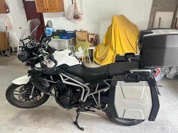 vendo Triumph Tiger 800 xrx ABS anno 2011 km 79800 perfetta in tutto, pronta per viaggiare. Bollo 2026 pagato, scad. revisione 11/27 , tris valigie originali Triumph con relativi attacchi pari al nuovo, doppio cupolino, gomme più dell' 80%, trasmissione pigione/corona/catena nuova cambiata luglio 2025, nella circostanza e' stato fatto il tagliando completo olio e filtri, le 3 candele , inoltre e' stata eseguita la pulizia e allineamento con diagnosi dei corpi farfallati con la sostituzione dei 3 collettori di aspirazione, lampadine nei fari led. IL PREZZO di 5000 TRATTABILE , se interessati vi fornisco i recapiti telefonici. si prega di non fare proposte assurde .
