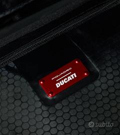 L'incontro tra lo spiritoinnovativo e la ricerca di eccellenza di Ducati e Piquadro dà vita a unaccessorio che fa di funzionalità e stile innovativo i propri punti di forza.Disponibile sia in rosso che in nero, il trolley da cabina Piquadro inpolicarbonato è stato progettato per offrire il massimo in termini dileggerezza, stile e resistenza. Il sistema di chiusura con cinghie dicompressione e la maniglia retrattile ne aumentano ulteriormente la praticità,mentre la fodera personalizzata e il design esterno, curato nei minimiparticolari, lo rendono un accessorio esclusivo, che diventa una vera iconadell'eccellenza firmata Made in Italy.