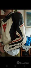 tuta moto a 2 pezzi della Dainese. vendo per inutilizzo. la tuta è in condizioni ottime, presenta qualche segno di usura ma non ha nessun difetto, per foto aggiuntive scrivetemi pure. Il pantalone è una taglia 52 mentre la giacca una taglia 50, dato però che la pelle un po' cede nel tempo aggiungo le misure reali attuali.