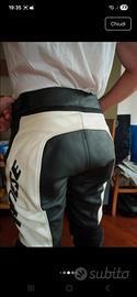 tuta moto a 2 pezzi della Dainese. vendo per inutilizzo. la tuta è in condizioni ottime, presenta qualche segno di usura ma non ha nessun difetto, per foto aggiuntive scrivetemi pure. Il pantalone è una taglia 52 mentre la giacca una taglia 50, dato però che la pelle un po' cede nel tempo aggiungo le misure reali attuali. MISURE: Pantalone dal cavallo alla fine: 74cm Dalla cintura dietro alla fine: 100cm Dalla cintura davanti alla fine: 92 cm Larghezza alla fine del pantalone: 15 cm Larghezza della coscia al cavallo 30 cm Vita: 45cm GIACCA Lunghezza giacca davanti: 60cm Larghezza: 62cm Lunghezza spalla-polso: 70cm Larghezza spalle: 52cm Lunghezza giacca dietro: 65cm per foto aggiuntive scrivetemi