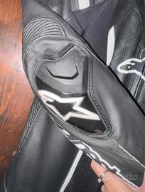 Tuta Professionale Alpinestars Missile V2 Nera / Bianca dalle elevate prestazioni tecniche, in pelle bovina di prima qualità e pannelli in poliammide HRSF e tessuto MATRYX® ultraleggero e molto resistente.