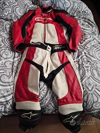 Tuta Alpinestars tg 50, divisibile, completa di saponette, in alcuni punti è strisciata ma non rotta.