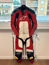 Vendo tuta moto alpinestars divisibile taglia 50. La tuta e stata sempre tenuta in maniera pulita e sempre usato prodotto per pelle dopo ogni uscita. Ha un sfriggio nella parte destra sul braccio e sulla coscia sinistra. Io sono alto 184 e peso 64 kg e mi calza perfetto aderente. Per altre foto contattatemi.prezzo 55 euto