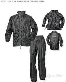 Tuta antipioggia divisibile in Nylon con film di PVC cuciture termonastrate per una completa impermeabilità Interamente foderata in poliestere forato.Chiusura frontale e doppia pattina, due tasche esterne con pattina per impedire l'entrata di acqua, ventilazione sulla schiena e cappuccio a scomparsa