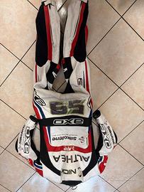 Vendo tuta in pelle di canguro realizzata su misura in condizioni eccellenti usata pochissimo mai cadute sempre conservata con la massima cura ultra leggera molto più resistente e flessibile della pelle bovina vestibilità e confort superiore sfoderabile con alloggio sacca x idratazione nella gobba protezioni omologate iserti elastici cuciture rinforzate ideale x pista e uso sportivo stradale taglia M in omaggio i guanti Dainese che costano un botto