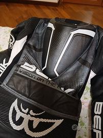 - Inserti in pelle elasticizzata sulla parte posteriore della manica, sulle ginocchia, sulla parte posteriore della vita per maggiore flessibilità e confort alla guida