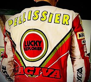 Tuta Cagiva Mito Lucky Explorer 125 ufficiale originale (unico esemplare originale in versione Lucky, prodotto al mondo direttamente dalla squadra corse Cagiva 125 ‘92 di Varese, atto voluto direttamente dal Claudio Castiglioni ex Presidente Cagiva RIP). Esclusivo per uso collezione.