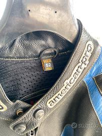 Vendo tuta in pelle da moto AmericanPro,2 pezzi,Pantaloni + Giacca,accoppiati da cerniera,segni di abrasioni da caduta ma comunque buona non strappata. Taglia 52 Prezzo 80€